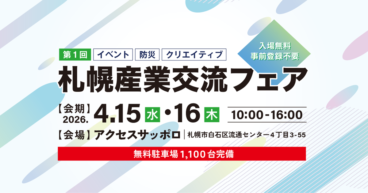 本フェアは、札幌イベント産業展2026、春の防災フェア札幌2026、SAPPORO Creative EXPOの3つの展示会で構成される産業交流イベントです。